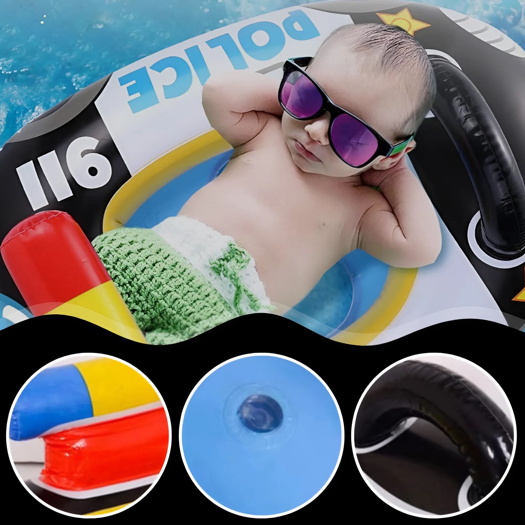 Створене у стилі поліцейської машини, коло не лише допомагає навчитися триматися у воді, але й надихає на рольові ігри та стимулює дитячу уяву.