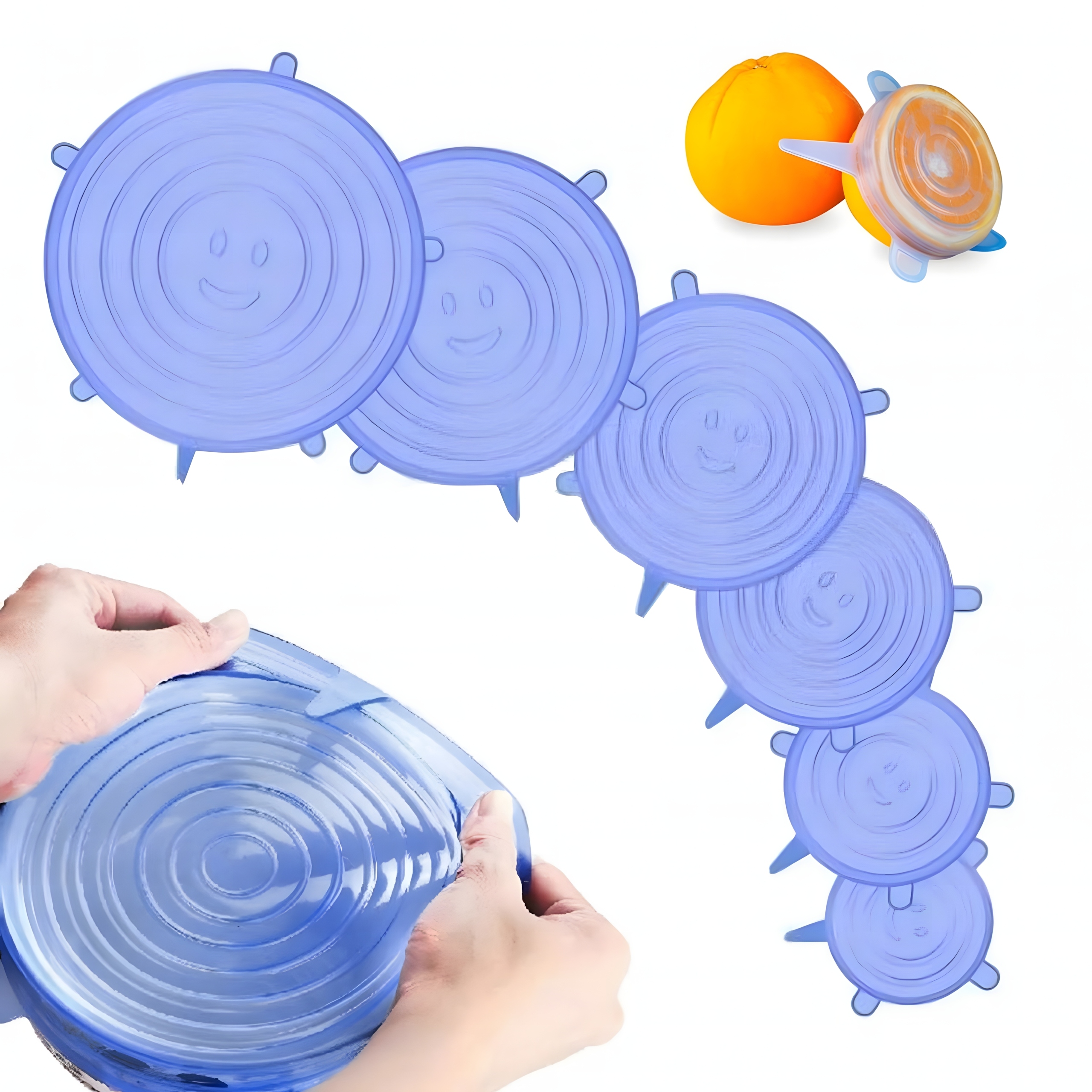✅ Комплект містить 6 кришок різних розмірів , що дозволяє ідеально підібрати їх до будь-якої ємності – від маленької склянки до великої каструлі.